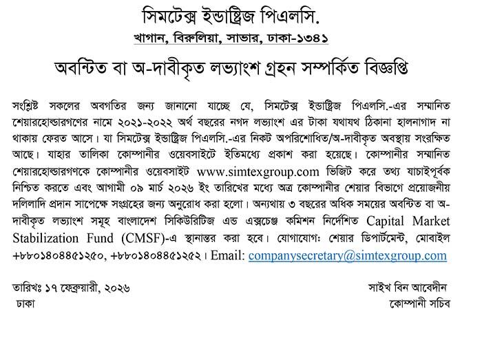 - ন্যাশনাল ফিডের লভ্যাংশ ঘোষনা